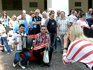 Mit der Fotoaktion vor dem Soester Rathaus wurde dem Protest ein Gesicht gegeben: Roma-Flüchtlinge und solidarische Deutsche wurden zusammen auf einem Sofa sitzend fotografiert. Diese Aktion soll deutlich machen, dass man die geplanten Abschiebungen ablehnt und aus humanitären Gründen für ein Bleiberecht dieser hier lange lebenden Menschen plädiert.