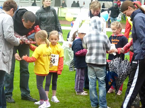 Mit Rasseln und Regenschirmen feuerten Eltern, das Lehrpersonal und Kindergärtnerinnen und Erzieher ihre Sprösslinge an. Und am Ende bekam jede und jeder eine Medaille. Bei den Bambinis (bis einschließlich Jahrgang 2006) verzichteten die Organisatorinnen bewusst auf eine Zeitnahme. Bei den Schulkinder- und Jugendläufen wurde jedoch bis auf die Hundertstelsekunde gestoppt.