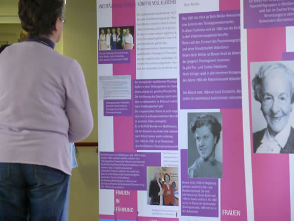 Eine Wanderausstellung, die die 80 Jahre Theologinnen-Geschichte in Westfalen dokumentiert und beleuchtet, wurde vom 27. bis 28.10 2014 in der Tagungsstätte Soest von mehr als 100 Frauen aus ganz Westfalen gewürdigt. Sie nahmen in der Zeit an der Mitgliederversammlung und Herbstkonferenz der Evangelischen Frauenhilfe in Westfalen e.V. teil. Auf zehn Plakaten und mit Hilfe einiger geschichtsträchtiger Dokumente wird gezeigt, wie sich die Position der Theologinnen in der Evangelischen Kirche von Westfalen veränderte. Gestaltet wurde die Ausstellung vom Landeskirchlichen Frauenreferat und dem Landeskirchlichen Archiv der Evangelischen Kirche von Westfalen.