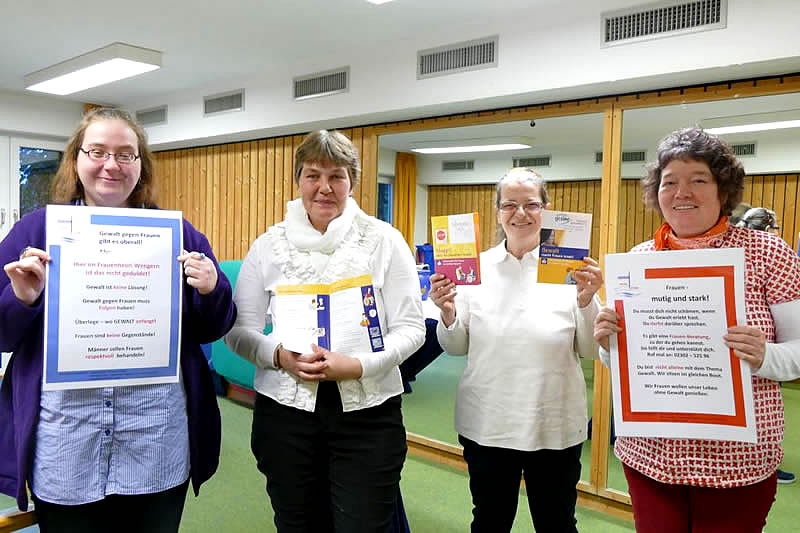Zusammen mit Andrea Stolte von der Frauenberatung EN informierten Katrin Hilbig, Martina Stang, Martina Hauser und Claudia Kockskämper über die Plakate „für Männer“ und „für Frauen“ sowie über die Broschüren gegen häusliche Gewalt in leichter Absprache. In Wohlfühlatmosphäre fiel die eine und andere Barriere, und Frauen konnten Mut fassen, sich über häusliche und sexuelle Gewalt zu äußern und Hilfen in Erfahrung bringen.