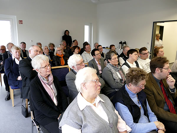 Nach dem Sektempfang und der Begrüßung durch die leitende Pfarrerin der Evangelischen Frauenhilfe in Westfalen, Angelika Weigt-Blätgen, erläuterte der Architekt Dieter Schaarschmidt das Konzept und den Verlauf des Bauprojektes. Er betonte dabei die gute Zusammenarbeit mit der Bauherrin, der Evangelischen Frauenhilfe in Westfalen e.V. Etwa fünf Jahre habe man von der ersten Planung bis zur Fertigstellung gebraucht. Dank einer gelungenen Grundstückswahl hatte das Projekt ideale Startbedingungen. „Es sollte von Anfang an kein Sonderbau sein, sondern Normalität ausstrahlen, sich in die Umgebung einfügen und Menschen mit besonderen Bedarfen sowohl Sicherheit und Betreuung als auch ein Zuhause bieten“, fasste der Solinger Architekt die Überlegungen zusammen.