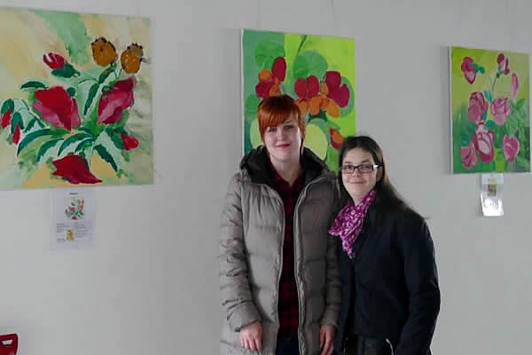 Svenja Müller und Christina Zeinoff stellen ihre Acryl-Bilder zum ersten Mal aus. Ihre Blumen-Bilder sind im Monat März in der Sparkasse in Alt-Wetter zu sehen.