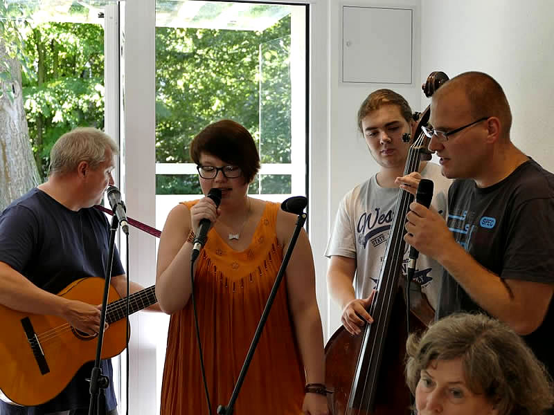 Schön, dass Sie in die Küche gekommen sind: Frauen aus dem Vorstand der Evangelischen Frauenhilfe in Westfalen, Mitarbeiterinnen der Einrichtungen in Soest, uns verbundene und befreundete Menschen, von denen ich Christiane Mackensen als stellvertretende Bürgermeisterin, Michael König, heute für die Soester Tafel und Frau Waldheuer für den Vorstand besonders begrüße. Hören werden wir die integrative Band KDGW, die Abkürzung steht für die Anfangsbuchstaben ihrer Namen - und nachdem ich dieses Rätsel gelöst habe, können wir uns entspannt auf Ihre Lieder freuen.