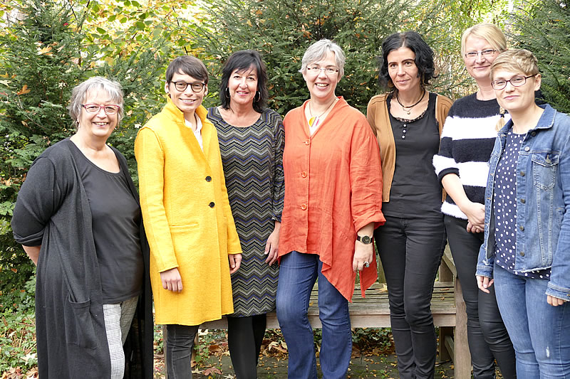 v.l.n.r. Jutta Maybaum, Josefine Paul (MdL) von Bündnis 90/Die Grünen und die Mitarbeiterinnen der Beratungsstelle TAMAR Sabine Reeh, Pfarrerin Birgit Reiche, Tanja Mesic, Jolanta Schmidt und Katharina Steinbeck