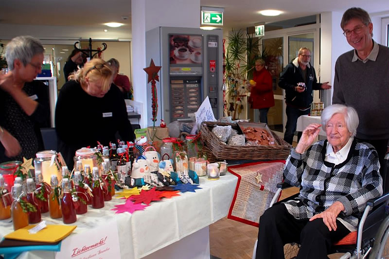 „Der Spätherbst hat auch etwas Schönes! Wenn es so früh dunkel ist und die Lichter strahlen!“ In den Augen der Bewohnerin funkelt es. Sie erfreute sich mit ihrem Sohn am ersten Lichtermarkt des Lina-Oberbäumer-Hauses.