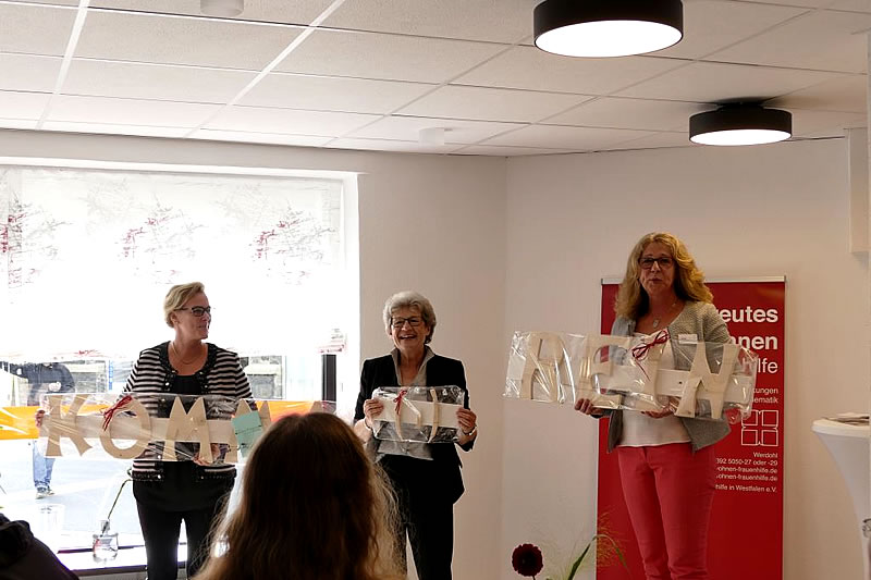 Die Bürgermeisterin der Stadt Werdohl, Sylvia Voßloh, und die Vorsitzende der Trägerin, Inge Schnittker, sprachen allen Beteiligten ihre Glückwünsche zu den Räumen aus, nachdem Angelika Weigt-Blätgen, leitende Pfarrerin der Trägerin, mit einem geistlichen Impuls die Anwesenden begrüßte. Die beiden langjährigen Mitarbeiterinnen, Ruthild Lindemann und Katrin Beyer-Erstmann, erzählten unterhaltsam von den Wegstationen des Arbeitsbereiches.