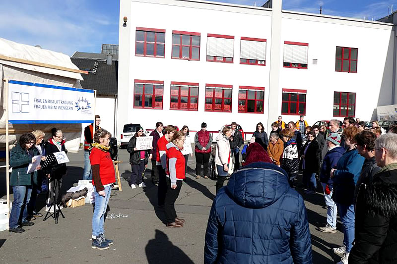 Und in diesem Jahr? Tanzen gegen Gewalt (One billion rising) wurde wie im letzten Jahr wieder u.a. organisiert von den Frauenbeauftragten Wohnen und Arbeit des FRAUENHEIM WENGERN. Am 14. Februar hieß es wieder für alle mittags vor der WfbM-Außenstelle Schöntal in der Wasserstraße 15a in Wetter: Tanzen gegen Gewalt – Brecht die Ketten!
