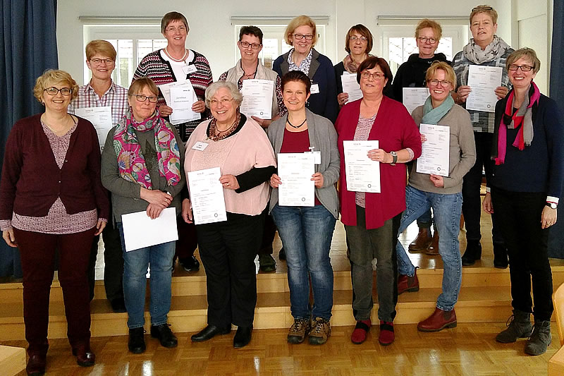 Fachkundig und kurzweilig, in Impulsreferaten, Erfahrungsaustausch und zahlreichen Übungen sowie liturgischen Zwischentönen erarbeiteten sich die Frauen Grundkenntnisse nicht nur zu diesen Fragestellungen. Viele der Teilnehmerinnen sind bereits ehrenamtlich in Trauercafés, in der Arbeit mit Eltern oder in der Gemeinde engagiert. Nun überlegen sie, ein Vertiefungsmodul zu besuchen.