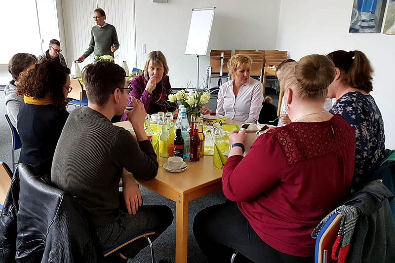 Erstmals veranstaltete das Bildungs-Institut für Pflegeberufe ein Homecoming in Hamm. 17 ehemalige Auszubildende aus den früheren Altenpflegekursen des Fachseminars für Altenpflege Haus Caldenhof folgten dieser Einladung im Februar in Hamm. Die Lehrkräfte Luise Finken, Jennifer Monser und Paul Linnemann begrüßten die examinierten Fachkräfte.