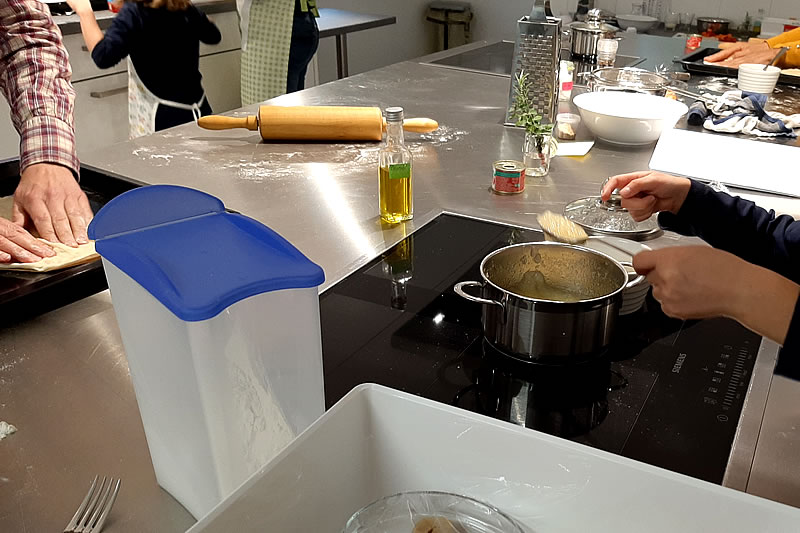 „Ich freue mich, dass wir endlich wieder Kochworkshops in unserer LeibSeeleKüche anbieten können“, erklärt Ulrike Bracht, Dozentin für Ernährung. „Mit dem an die aktuellen Bedingungen angepassten Konzept hatten alle Familien diesmal sogar einen eigenen Platz - wie in einem Restaurant!“ In den Herbstferien wurden in der Soester Eventkochküche der Evangelischen Frauenhilfe in Westfalen endlich wieder die Löffel geschwungen.