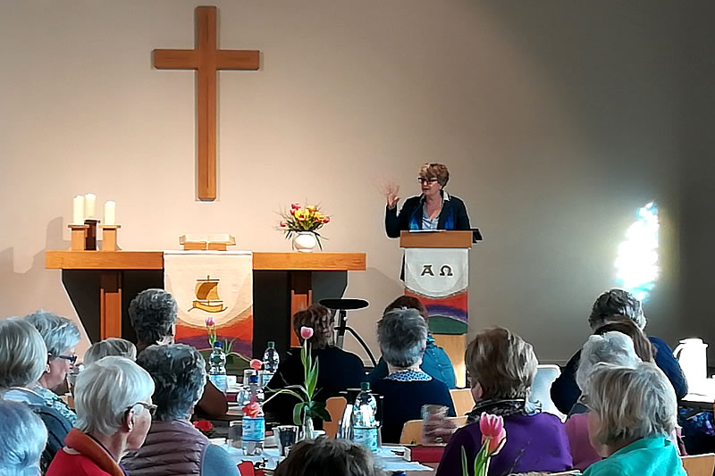 Im Vortrag mit lebendigen Lese-Einschüben, Bibelstellen, Gedichten, Liedern und Austausch wurden thematische Bezüge zur eigenen „Heimat-Spurensuche“ hergestellt. Wo war, wo bin ich daheim? Wie denkt die Bibel über Heimat und Unterwegssein? Wie können wir diese Welt zu einer Heimat für alle werden lassen? Die Fluchtthematik spielte eine starke Rolle bei dem Thema.