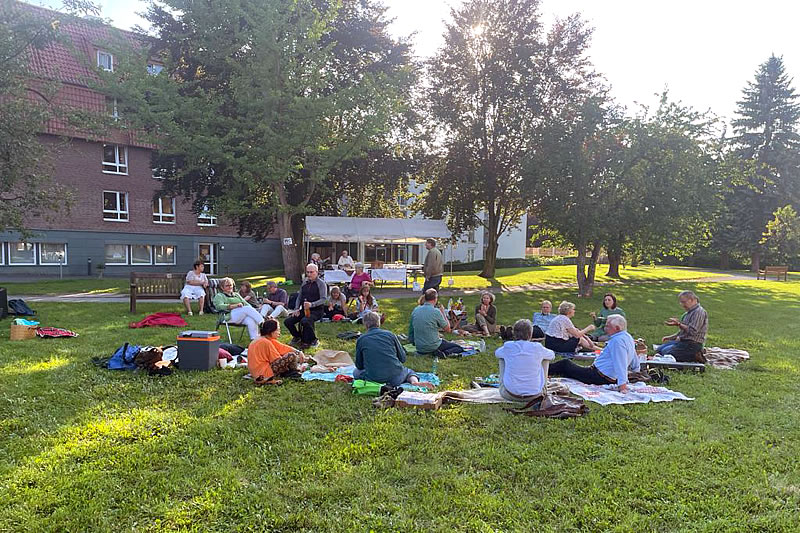 „Wie die Speisung der 5.000!“ „So stell ich mir Kirche im Sozialraum vor!“ „Was für eine Idylle ist das hier!“ Das erste „Grüne Picknick“ fand auf der großen Wiese des Soester Frauenhilfe-Geländes am Feldmühlenweg unter Obstbäumen statt und erhielt viel Zuspruch von den Gästen.