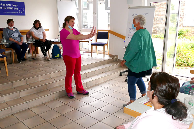 „Wir sind GEMEINSAM STARK!“ mit dem Motto der Frauengruppe „Mutig und Stark“ endeten lautstark alle fünf Veranstaltungen. „Fünf Veranstaltungen: drei am Böllberg, eine im Schöntal, eine in Wengern – das soll uns mal eine nachmachen! – Jetzt müssten alle Frauen gut vorbereitet sein. Sie können jetzt trainieren, keine Gewalt zu erfahren. ABER, wenn sie passiert, wie sie Hilfe bekommen.“ So lautete die Auswertung der Vorstellung des Leitfadens „Gewaltfrei – im Frauenheim Wengern“. Er ist ein Anti-Gewalt-Leitfaden von Frauen mit Behinderung für Frauen mit Behinderung.