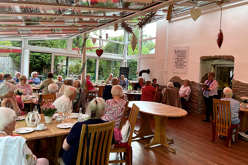 Über 50 Frauen aus sieben Gruppen folgten der Einladung ins Landgasthaus Staplack, in dem bereits ein buntes Kuchenbuffet aufgebaut war. Die Krönung: Frische Waffeln mit heißen Kirschen und Vanilleeis.