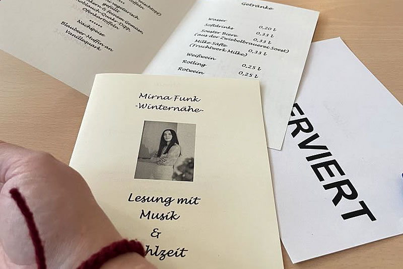 Da saß sie - in einem gemütlichen Sessel, mit Beistelltisch und einer Leselampe und las Abschnitte aus ihrem Debütroman „Winternähe“. Mirna Funk schaffte zwischen sich und den mehr als 80 Zuhörer*innen in der Tagungsstätte Soest eine fast private Atmosphäre Ende März. Das musikalische und kulinarische Rahmenprogramm steigerte den Genuss dieser Lesung.