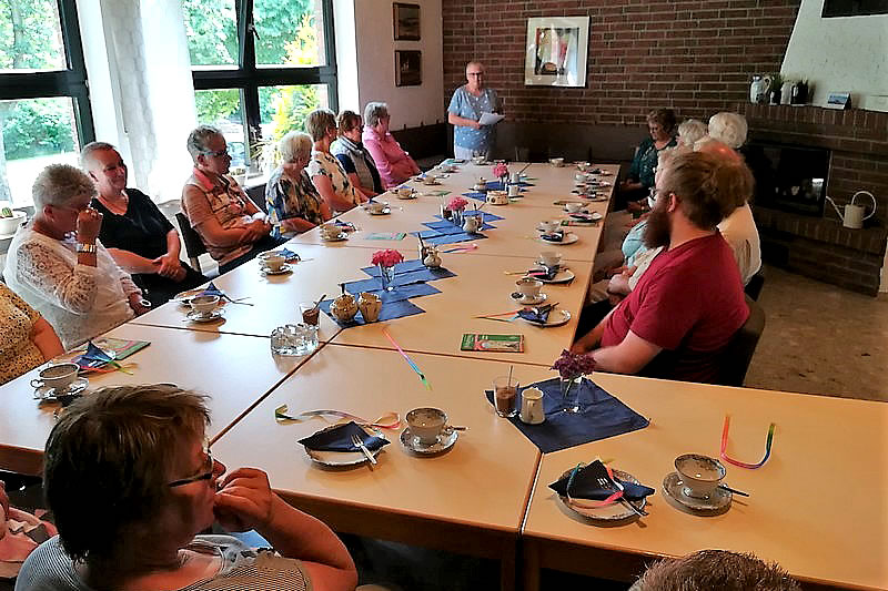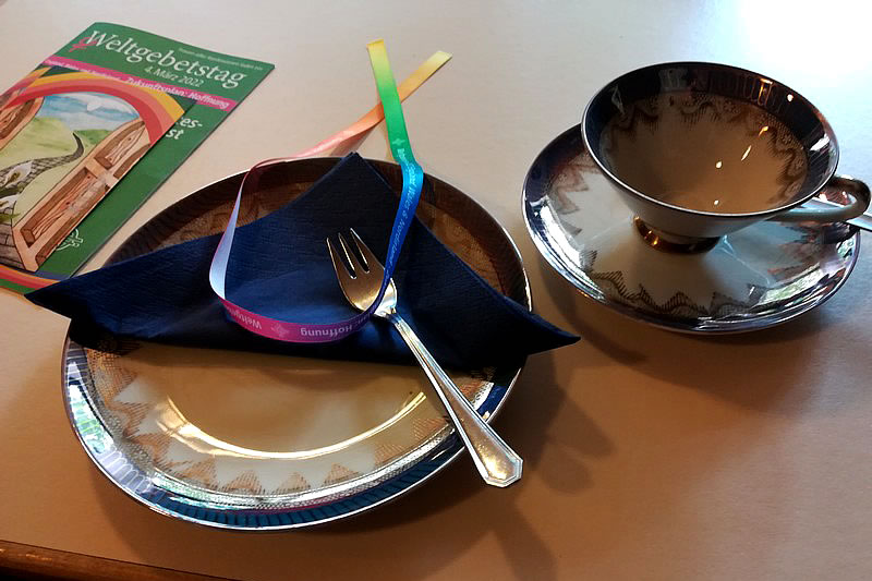 Los ging es in der Evangelischen Kirche in Unna-Billmerich mit einer Andacht. Hier hörten die Teilnehmenden noch einmal die Geschichten der Frauen aus England, Wales und Nordirland. Danach ging es zur Tea Time ins gegenüberliegende Gemeindehaus.