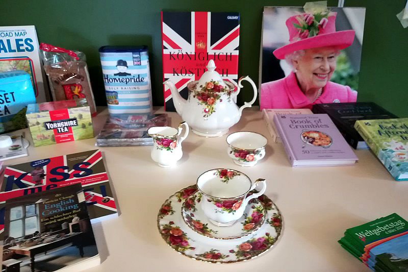 Ein liebevoll gedeckter Tisch mit besonderem Porzellan und verschiedenen Teekannen erwartete die Frauen in Unna-Bilmerich. Ein Mitbringbufett mit Köstlichkeiten aus den Weltgebetstagsländern England, Wales und Nordirland stand bereit und verlockte zum Probieren.