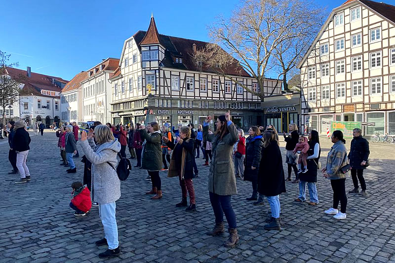 Aus Empörung darüber, dass umgerechnet weltweit eine Milliarde Frauen (one billion) Gewalt ausgesetzt sind, entstand vor zehn Jahren das weltweite Projekt „One billion rising“, dass sich gegen Unterdrückung und Gewalt an Frauen und Mädchen richtet. Diese Aktion ruft seit 2013 Frauen und Männer aus, im Tanz auf öffentlichen Plätzen ihren Protest gegen geschlechtsspezifische Gewalt auszudrücken. Im Jahr 2014 erreichte die Kampagne auch den Kreis Soest. So tanzten Soester*innen mittags auf dem Marktplatz in Soest, nachmittags fand die Aktion auf dem Lippstädter Rathausplatz statt.