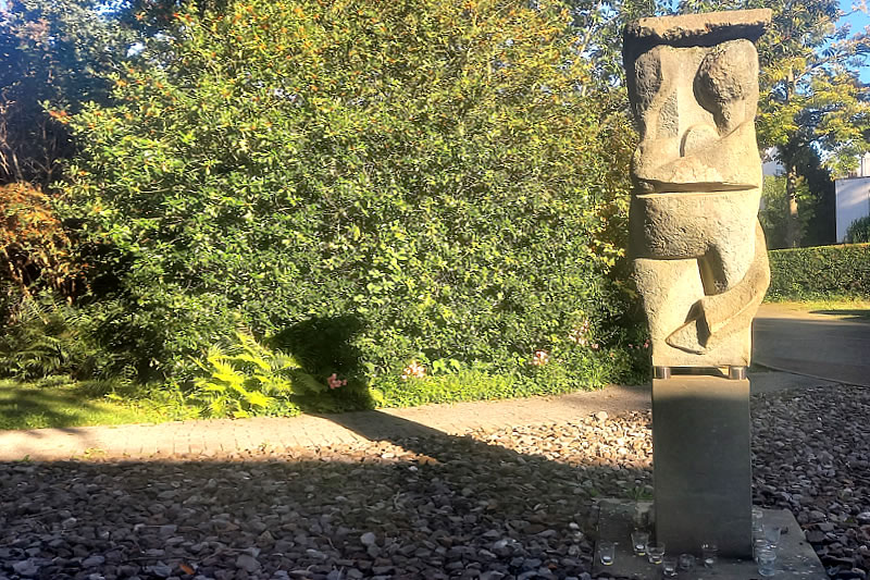 Um der Sehnsucht nach Frieden sichtbar auszudrücken, werden während der Andacht Teelichte entzündet und am Mahnmal „Gewalt überwinden“ aufgestellt.