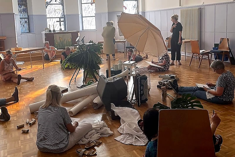 Der Kurs war wirklich ‚mal was anderes‘“, meinte eine der Teilnehmenden. 16 Frauen übten sich im „Drunter und drüber“ unter Anleitung der Künstlerin Rebekka Schulte. „Mit Stift, Farbe und so weiter… Mal was anderes“ lautete der Titel des Workshops Anfang September in der Tagungsstätte Soest.