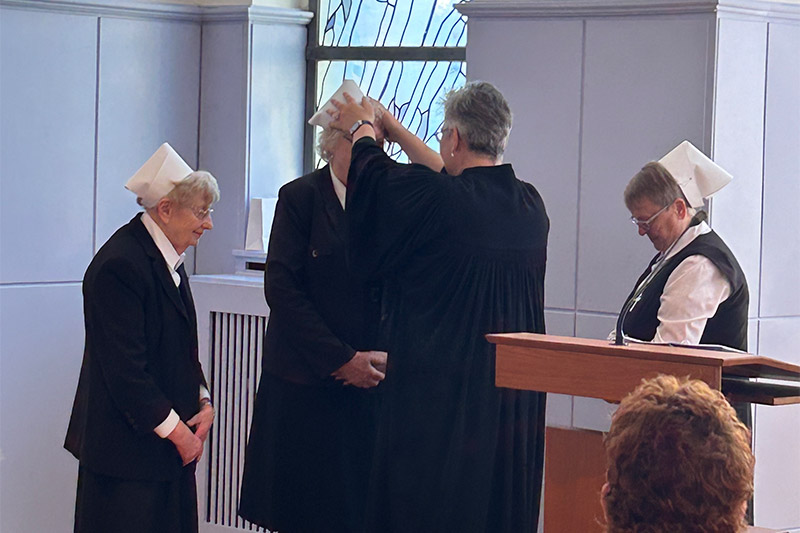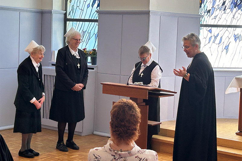 So kamen zum diesjährigen Trinitatis-Festgottesdienst aus vielfältigen Gründen auch vielfältige Gäste zusammen: Schwestern der Westfälischen Schwesternschaft und Mitglieder des Freundeskreises, Bewohnerinnen des Lina-Oberbäumer-Hauses, Kolleg*innen, Wegbegleiter*innen und Familie von Ulrike Ollinger. Den Gottesdienst hielten Pfarrerin Lindtraut Belthle-Drury, Pfarrerin Anne Heckel und Pfarrerin Birgit Reiche.