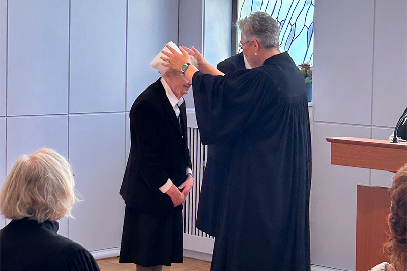 Diesmal konnte eine Aufnahme in den Freundeskreis und die Ehrung mehrerer Jubilarinnen begangen werden. Angelika Waldheuer, Vorsitzende der EFHiW, konnte in den letzten Jahren immer wieder an Veranstaltungen der Schwesternschaft teilnehmen. Dabei hat sie die Gemeinschaft der Westfälischen Frauenhilfe-Schwesternschaft schätzen gelernt. Nun trat sie dem Freundeskreis der Schwesternschaft in diesem Jahr bei und wurde im Gottesdienst feierlich aufgenommen.
