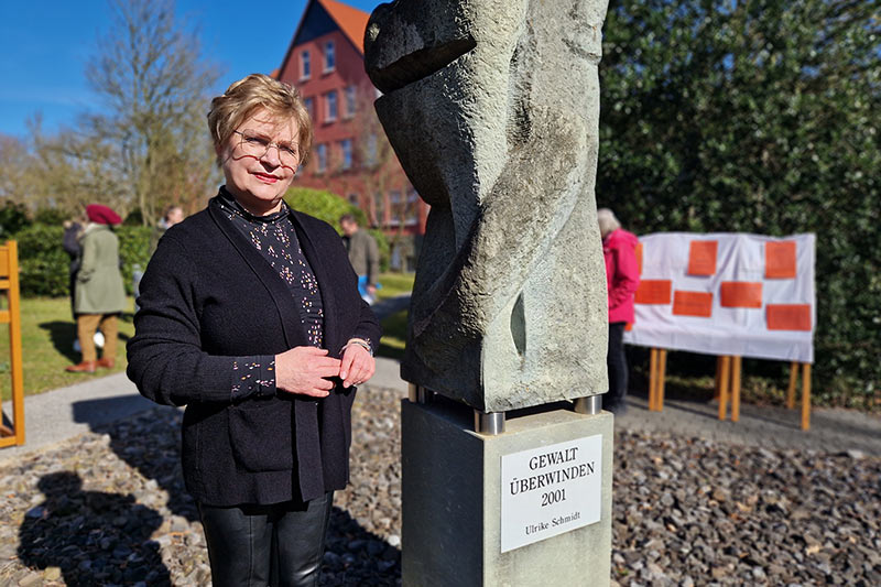 „Jeden zweiten Tag tötet ein Mann seine (Ex)Partnerin.“ So ist auf einem der vielen Plakate am Mahnmal „Gewalt überwinden“ der Evangelischen Frauenhilfe in Westfalen (EFHiW) am Feldmühlenweg in Soest zu lesen. Zwischen dem 1. und 15. März erinnern die eindringlichen Botschaften dort und an anderen Orten in Soest und Umgebung an im Jahr 2024 und Anfang 2025 ermordeten Frauen. Unter dem Titel „Femizide stoppen!“ hat die Allgemeine Frauenberatungsstelle im Kreis Soest in Trägerschaft der EFHiW diese Aktion initiiert und kreisweit zur Beteiligung aufgerufen. Gemeinsam mit verschiedenen Kooperationen soll so auf das alarmierende Ausmaß geschlechtsbezogener Gewalt aufmerksam gemacht werden.