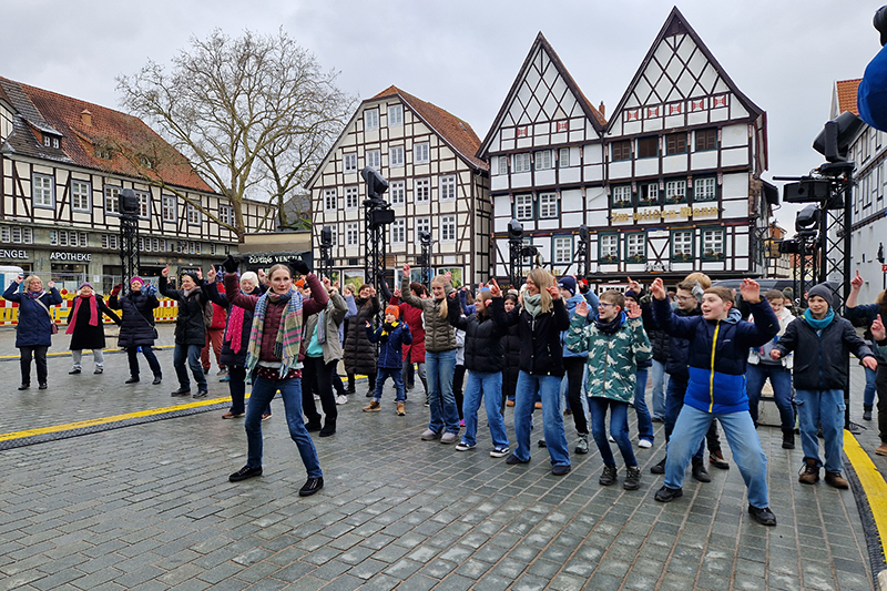 Mitarbeitende der FRAUENBERATUNG SOEST und Mitarbeitende und Bewohnerinnen des FRAUENHAUS im Kreis Soest ließen es sich nicht nehmen, sich auch in diesem Jahr an der Tanz-Demonstration auf dem Soester Marktplatz am 14. Februar mittags zu beteiligen.